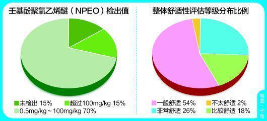在2019年12月25日,青岛市消保委公布了2019年度40批次中老年休闲鞋、旅游鞋比较试验结果,在8大检测项中,有3项100%合格,9款鞋遇水易滑倒,34款鞋检出了具有毒性和致癌性的“壬基酚聚氧乙烯醚(NPEO)”,约占85%。